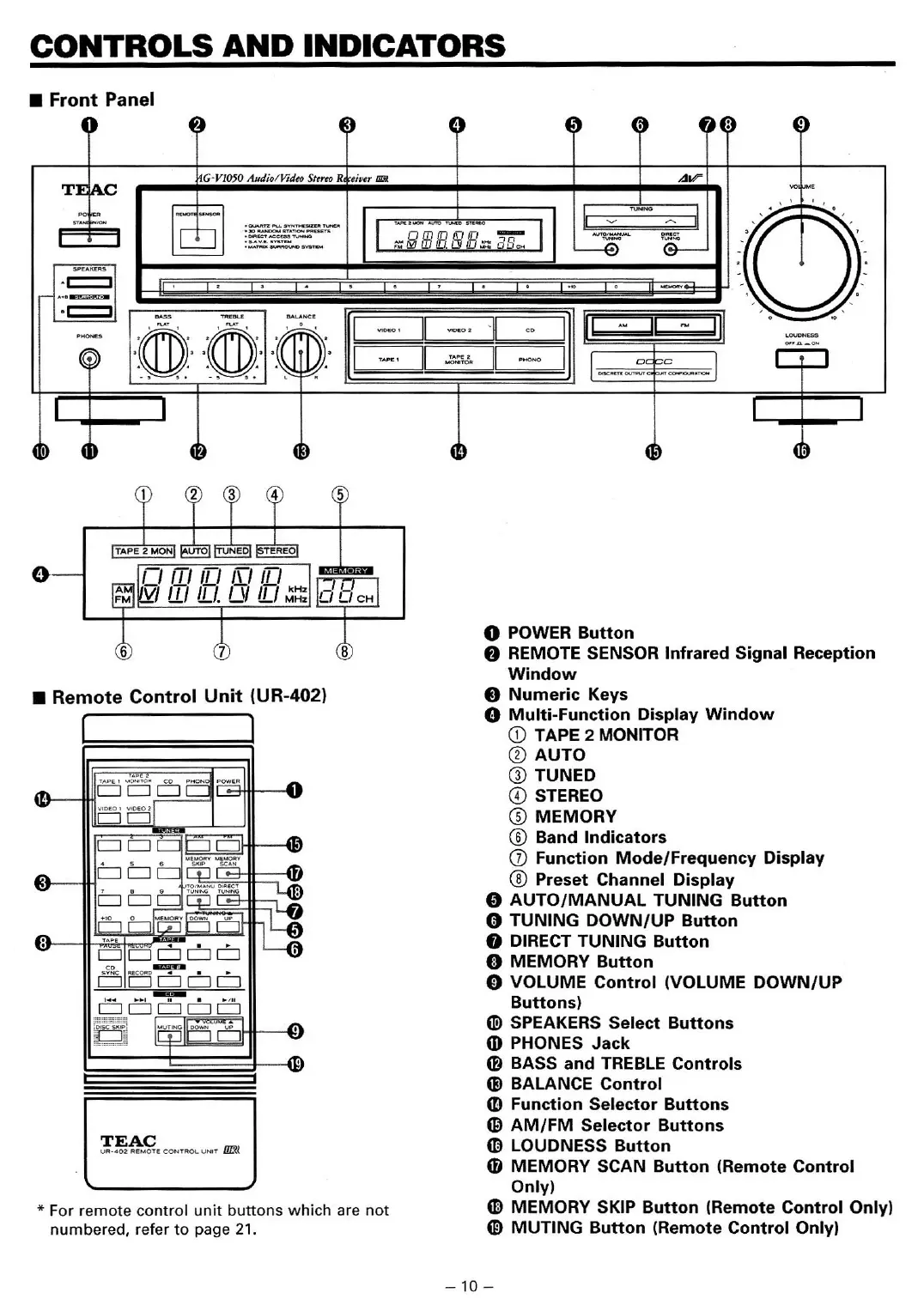 Teac AGV1050 - CONTROLS AND INDICATORS; Front Panel Layout
