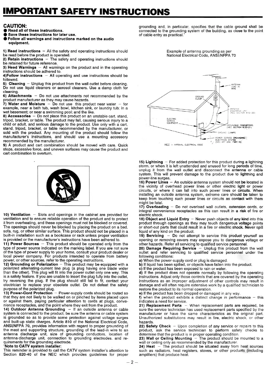 Teac AGV1050 - IMPORTANT SAFETY INSTRUCTIONS; General Safety Precautions