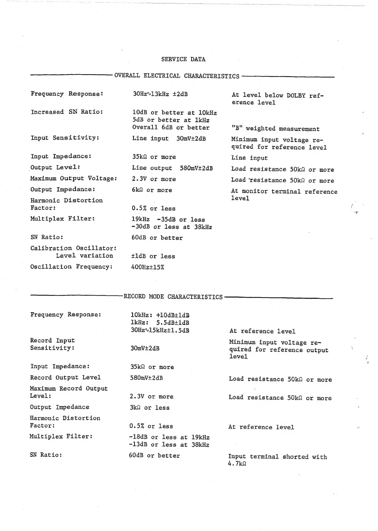 Teac AN-80 - Service Data; Input Impedance; Output Impedance