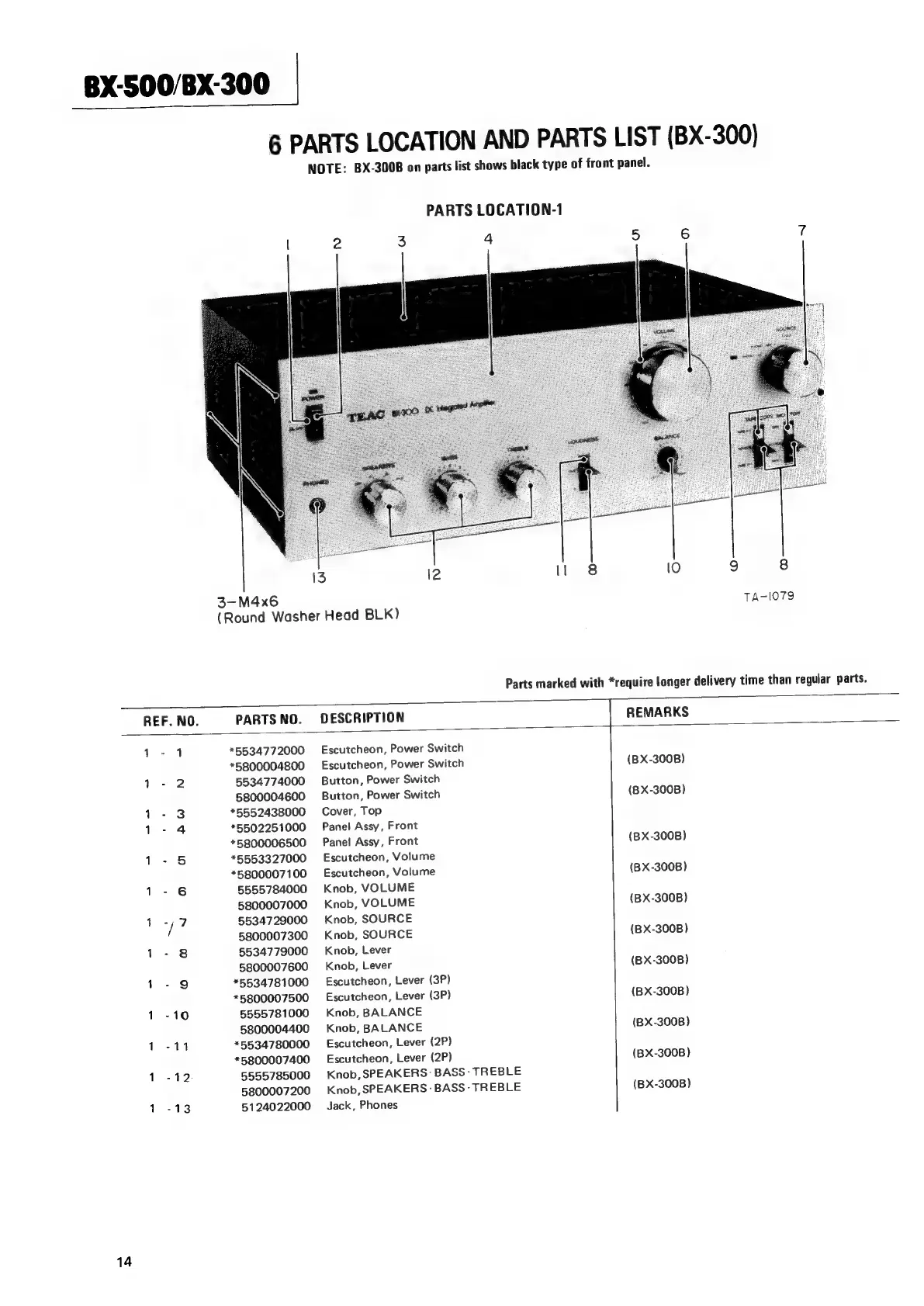 Teac BX-300 - Parts Location and Parts List (BX-300); Parts Location-1 (BX-300); Parts List (BX-300)