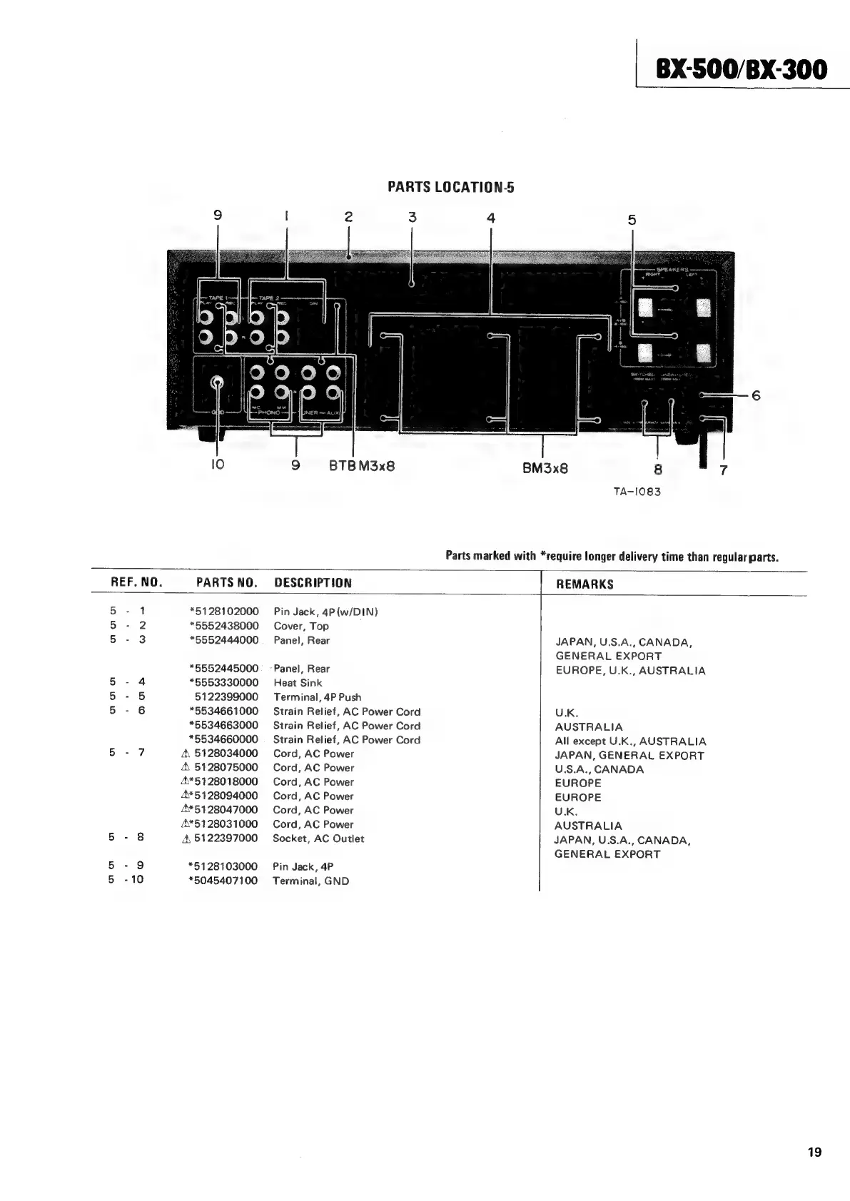 Teac BX-300 - Parts Location-5 (BX-300); Parts List (BX-300)