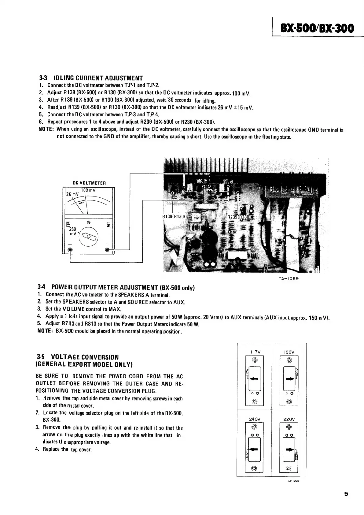 Teac BX-300 - Idling Current Adjustment; Power Output Meter Adjustment (BX-500 only); Voltage Conversion (General Export Model Only)