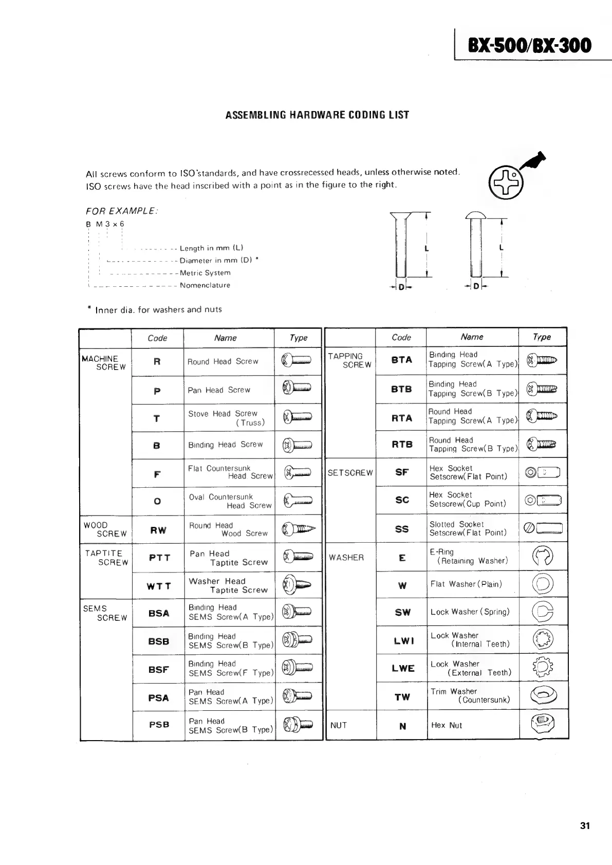 Teac BX-500 - Assembling Hardware Coding List
