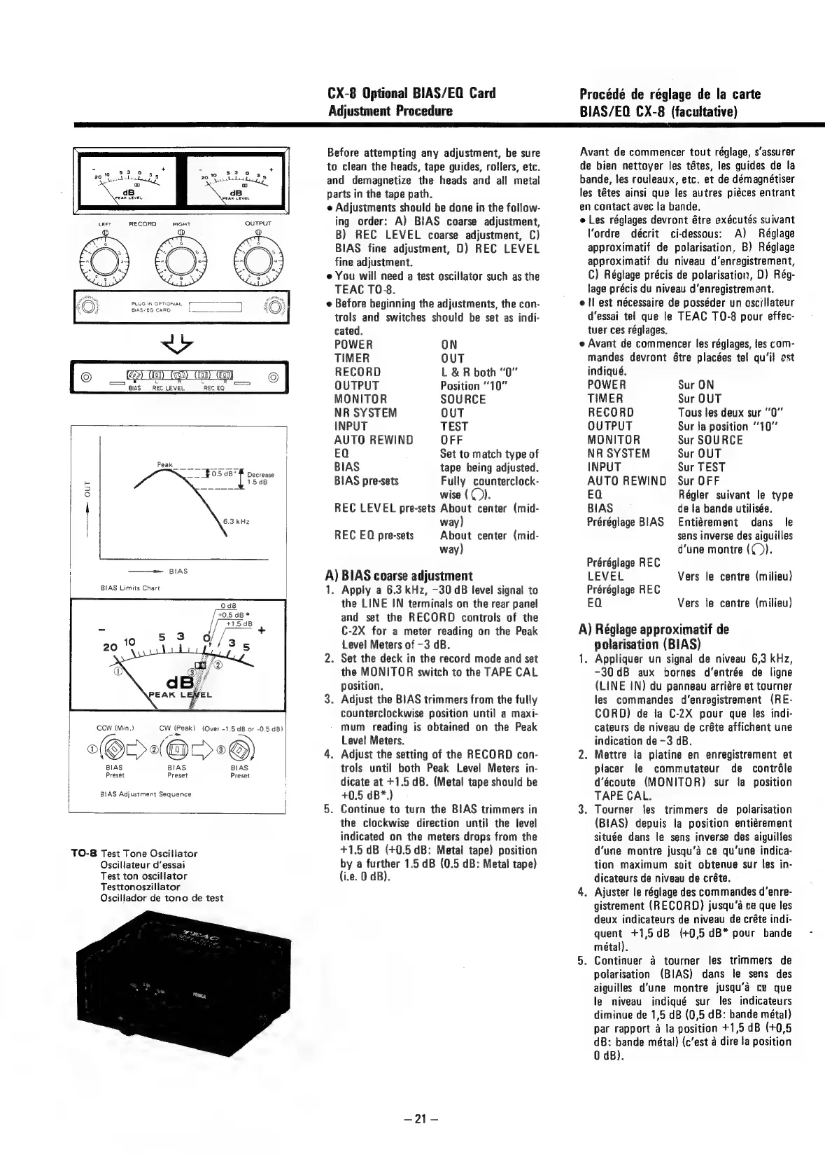 Teac C-2X - CX-8 BIAS;EQ Card Adjustment; BIAS Adjustment Procedures; REC LEVEL Adjustment Procedures