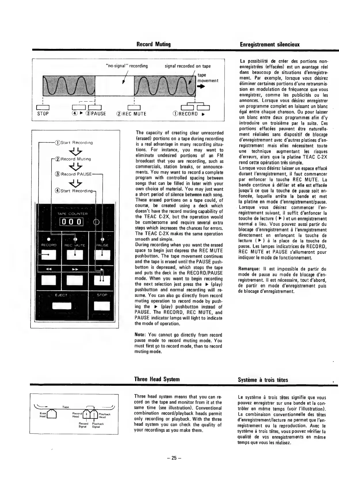 Teac C-2X - Special Functions; Record Muting Function; Three Head System Benefits