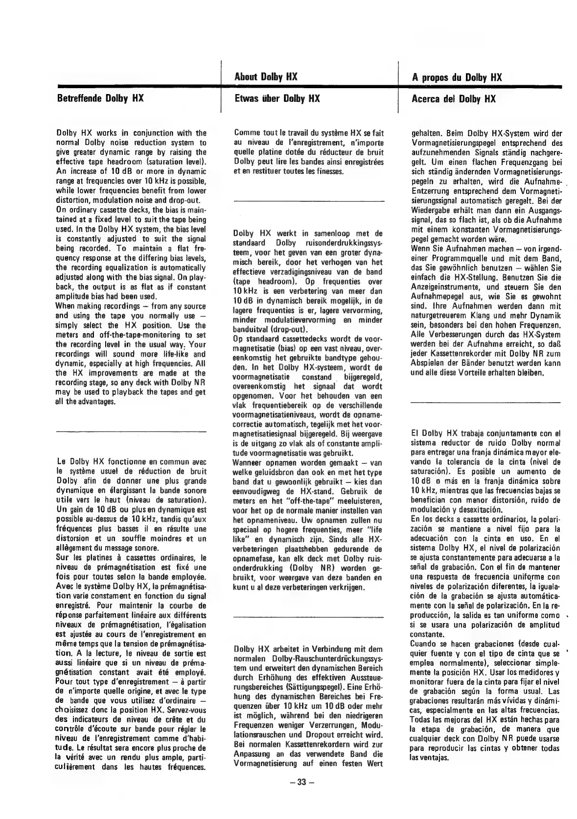 Teac C-2X - Dolby HX Feature; Dolby HX Operation and Benefits