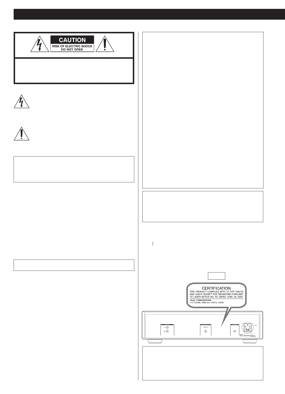 approved by TEAC CORPORATION for compliance will void the
