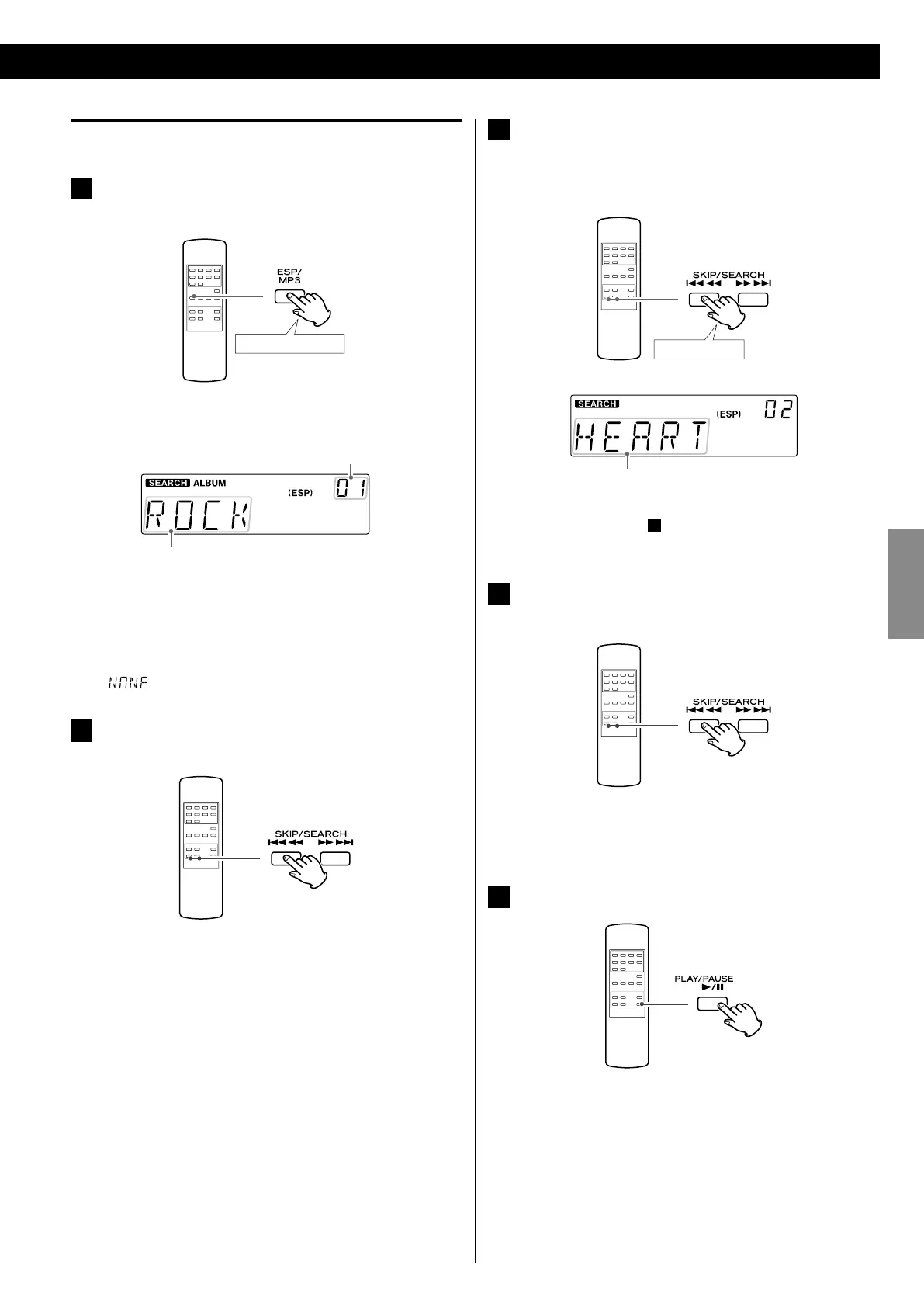 Les témoins SEARCH et ALBUM s'allument et le nom et le