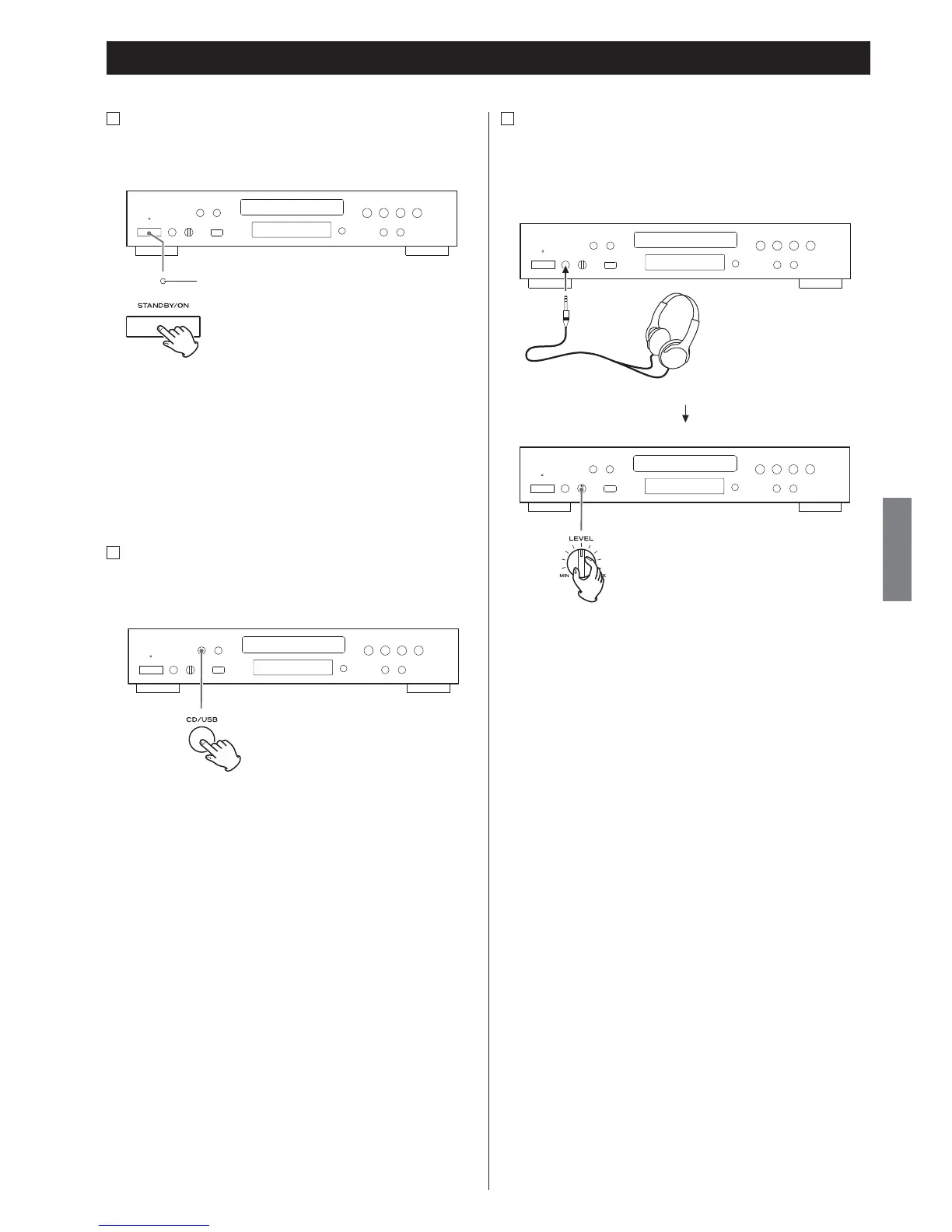 Insérez la fiche du casque dans la prise PHONES et réglez le