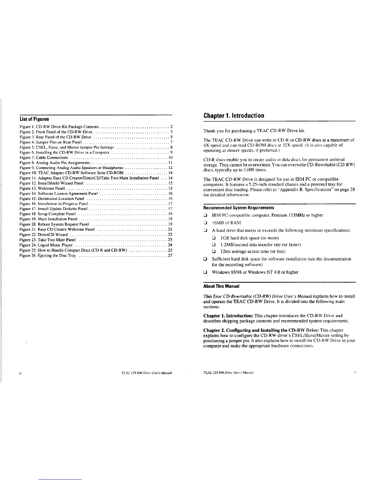Teac CD-W54E - List of Figures; Introduction; Recommended System Requirements