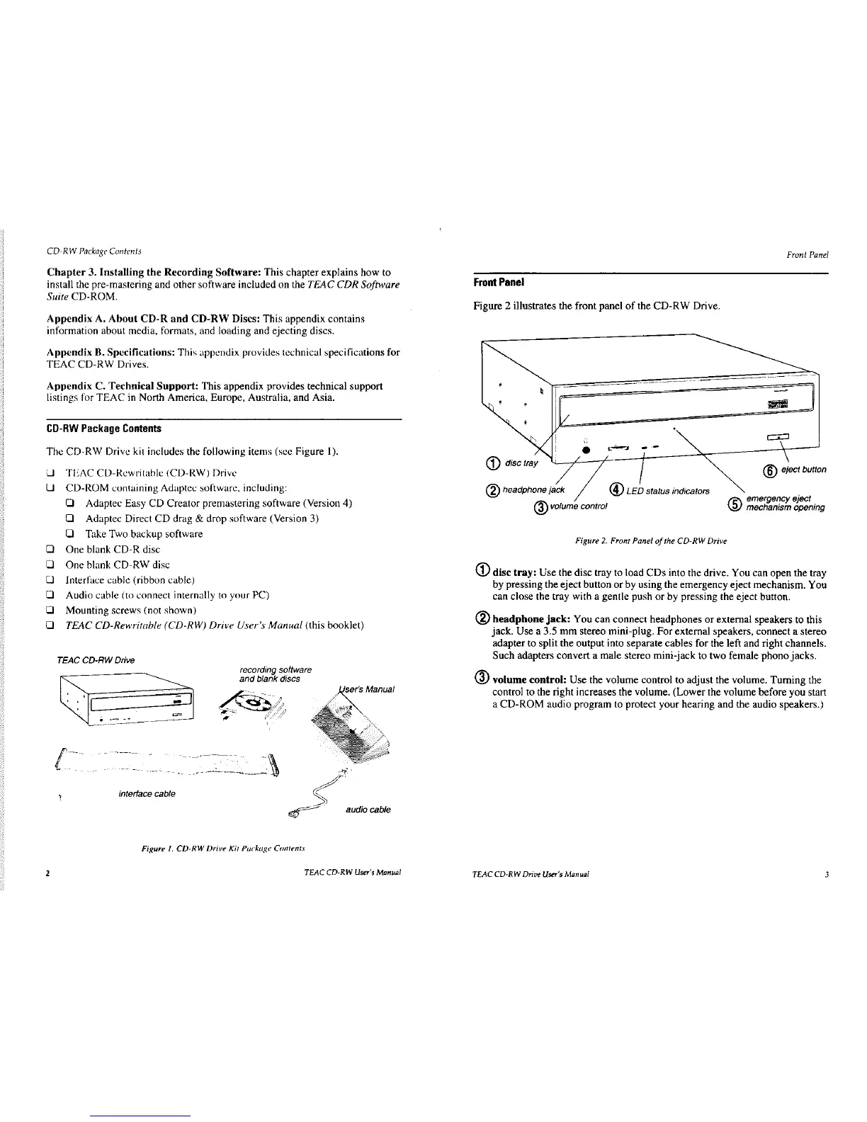 Teac CD-W54E - CD-RW Package Contents; Front Panel