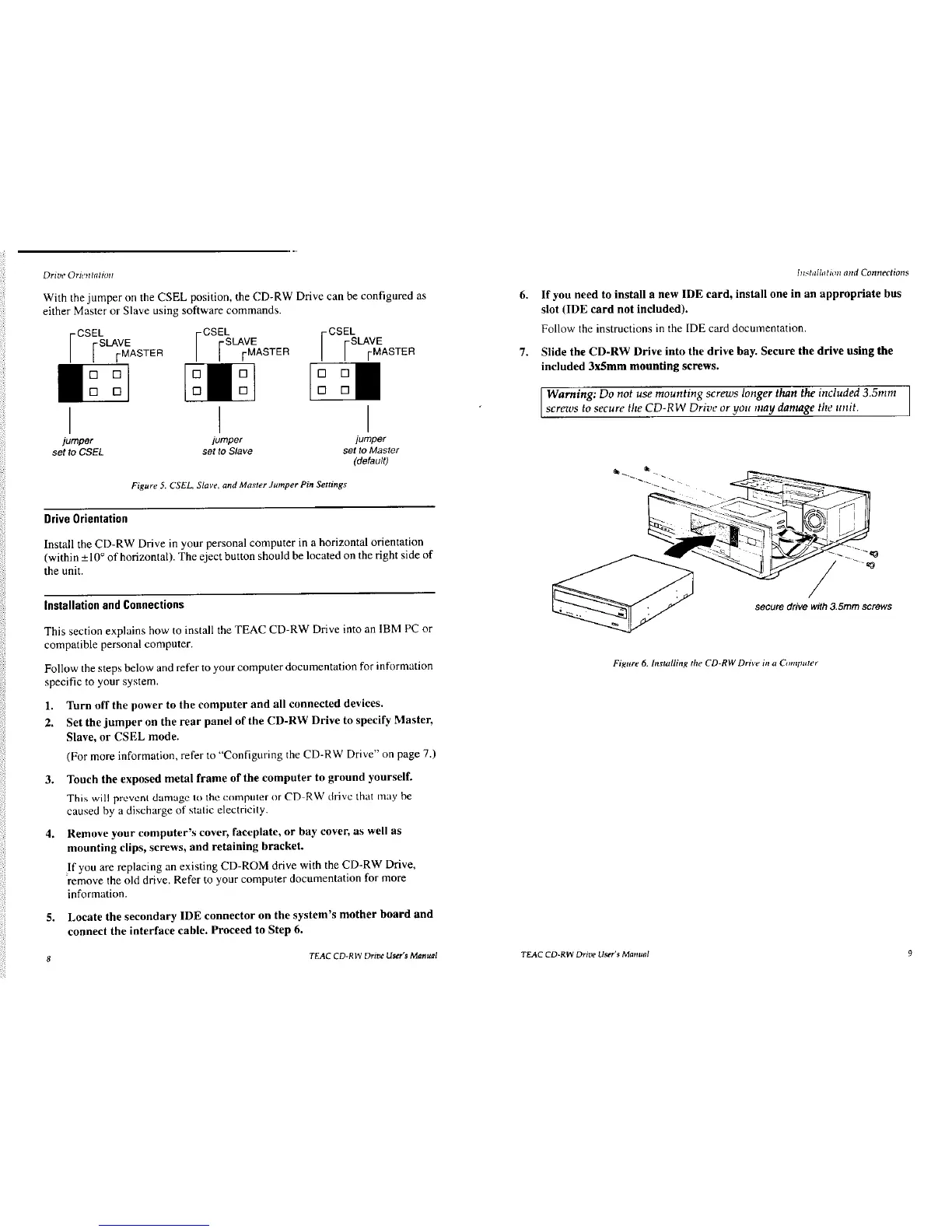 Teac CD-W54E - Drive Orientation; Installation and Connections