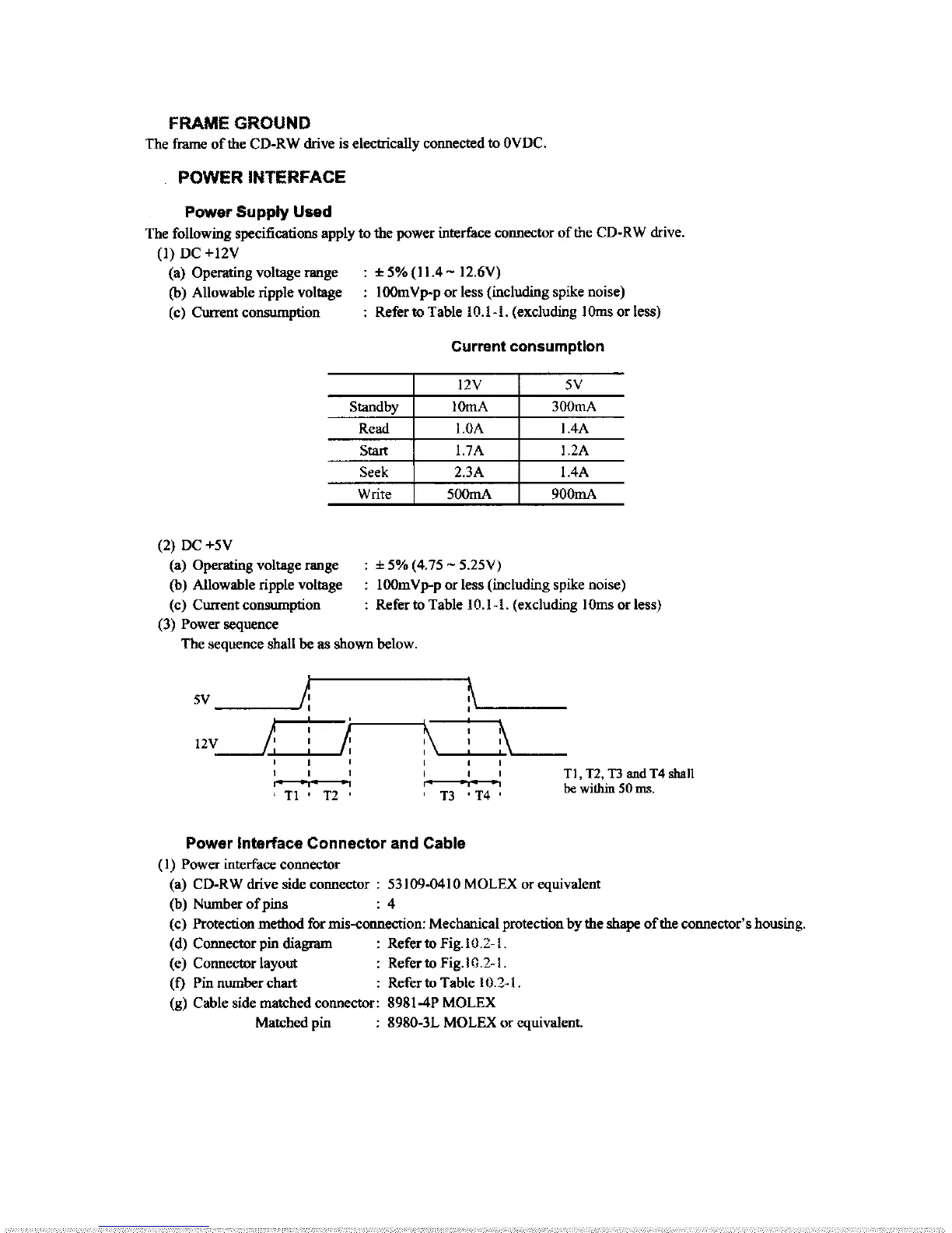 Teac CD-W54E - Frame Ground; Power Interface; Power Supply Used; Power Interface Connector and Cable