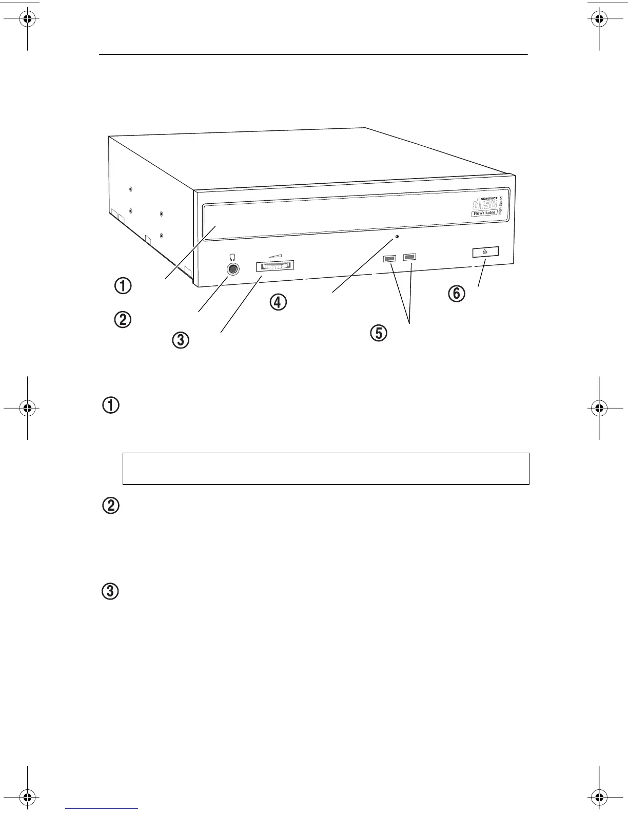 Figure 2 illustrates the front panel of the CD-RW Drive.