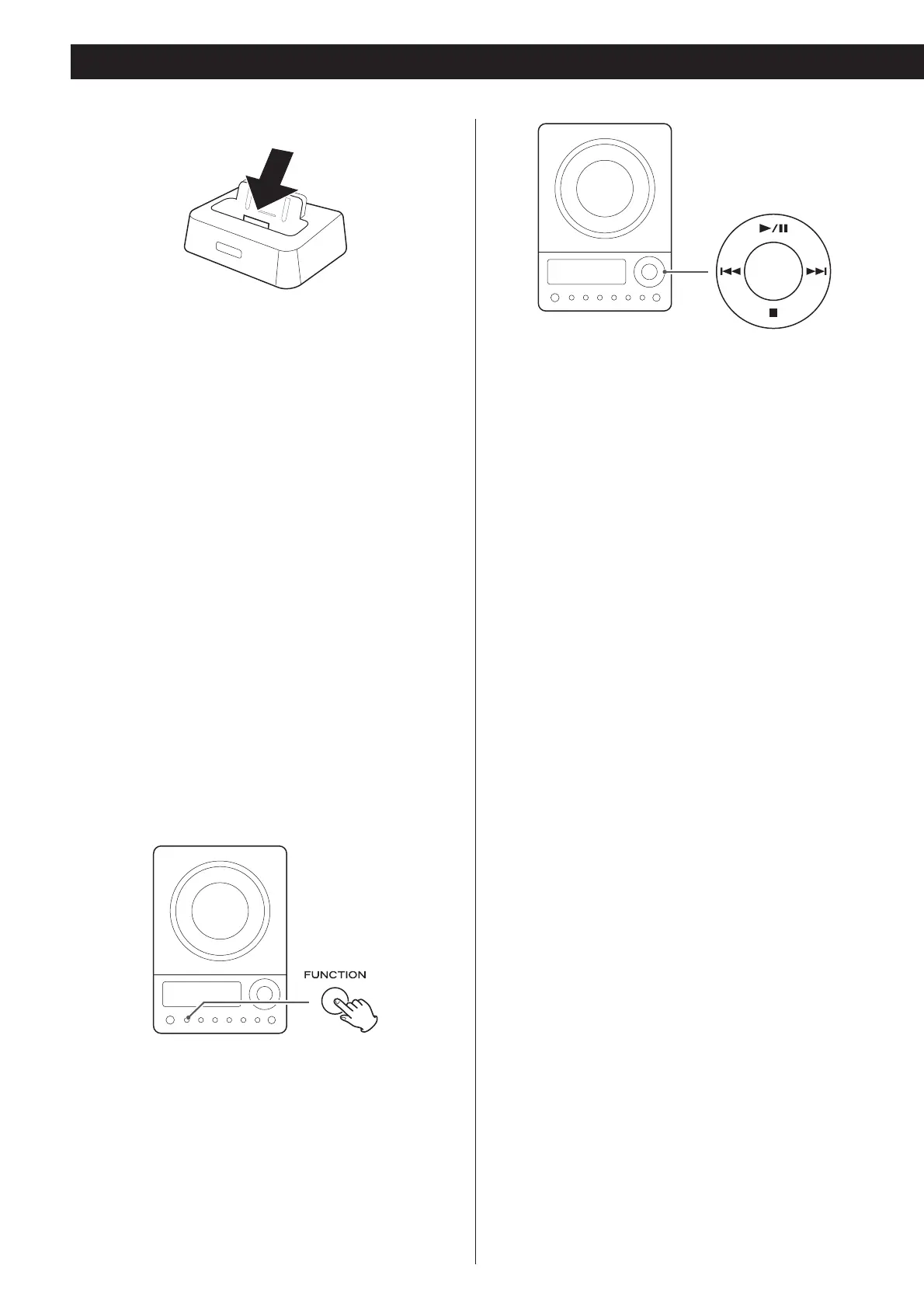 < The Stop button (H) doesn’t work in iPod mode.