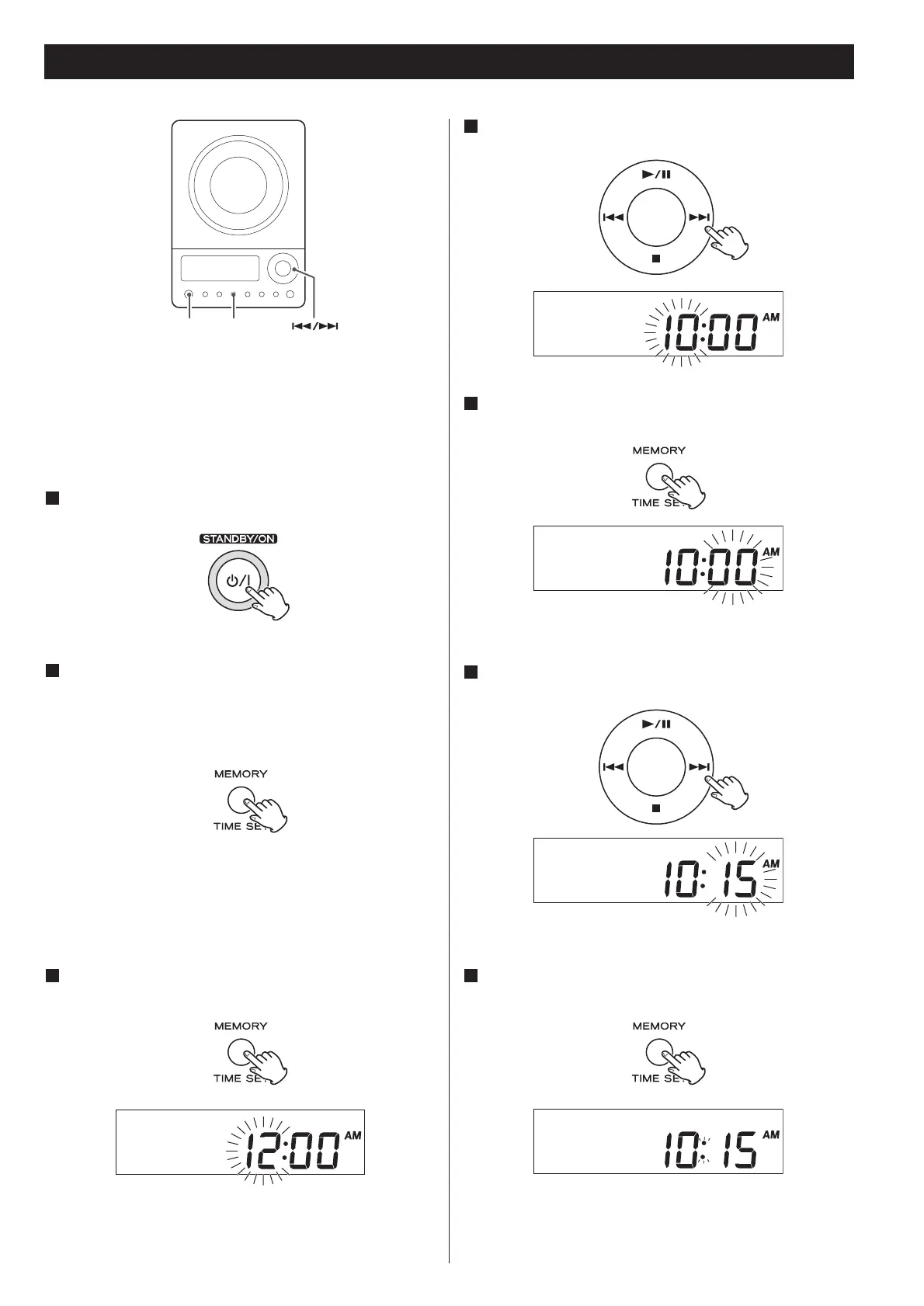 < If you leave the unit idle for 7 seconds, the time setting mode