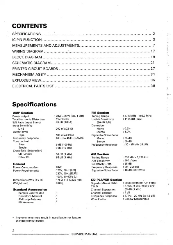 Teac CR-H100 - Specifications; AMP Section; FM Section; AM Section