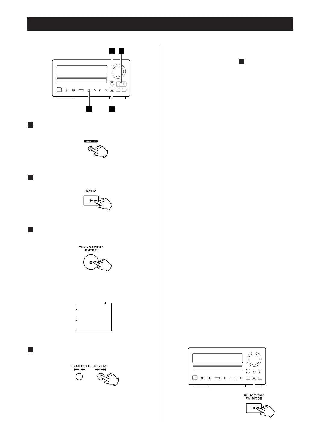 Repeatedly press the TUNING/PRESET/TIME button