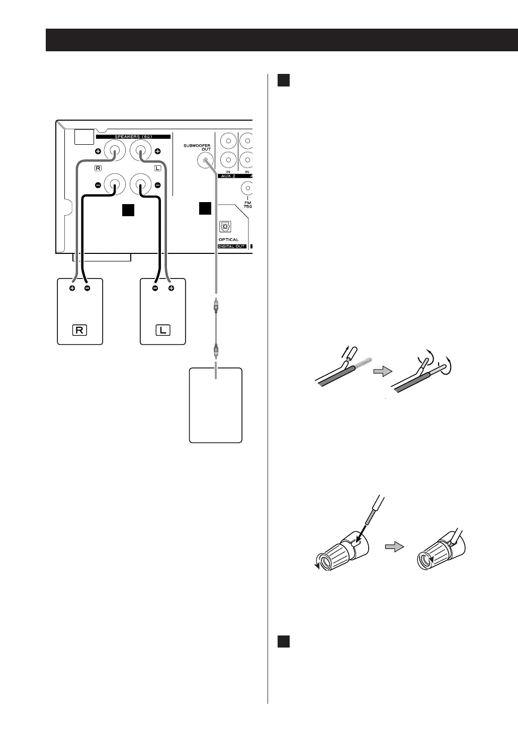 < Prepare the speaker cords for connection by