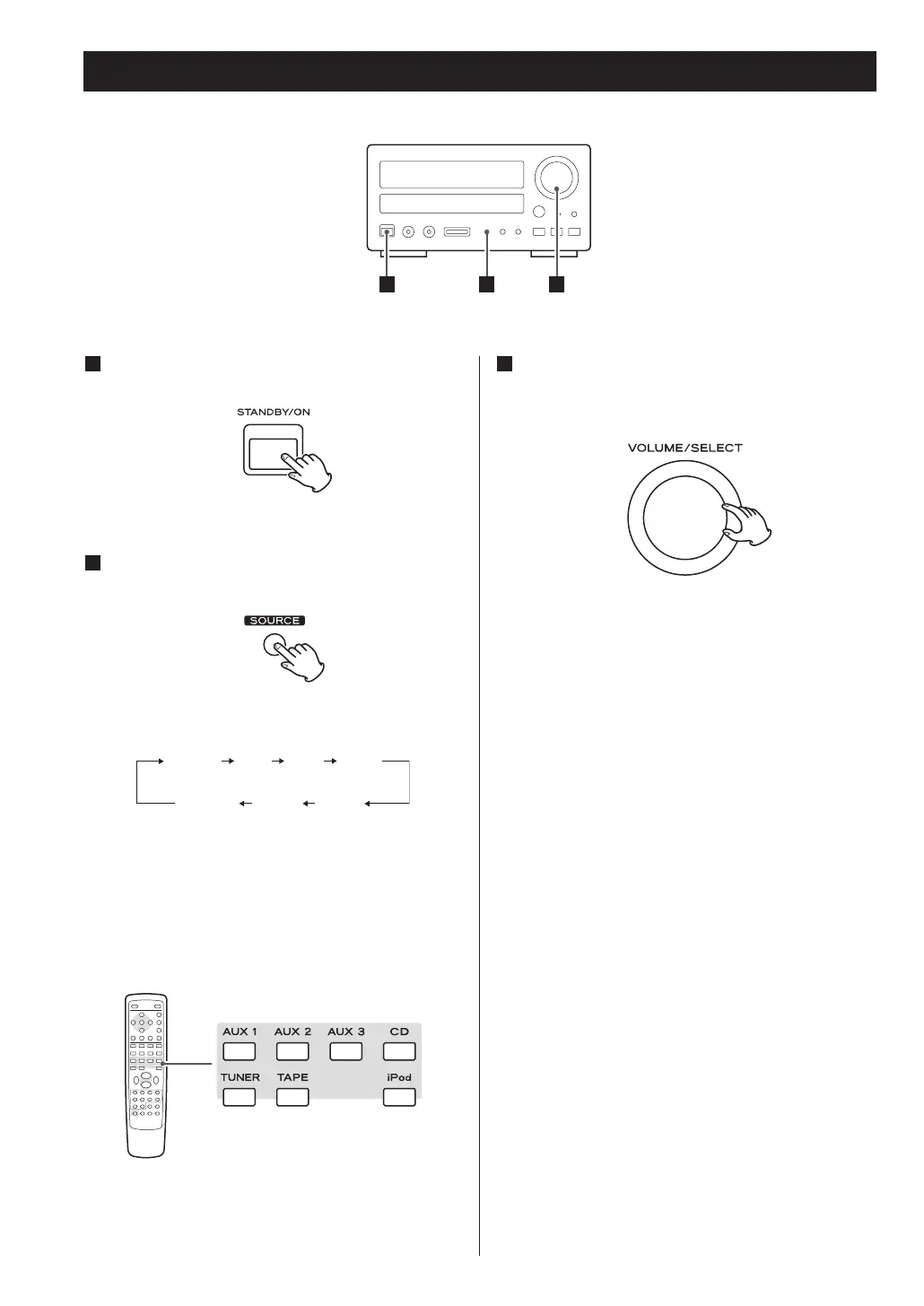 < You can use the CD, iPod, TAPE, AUX (1, 2 or 3) or