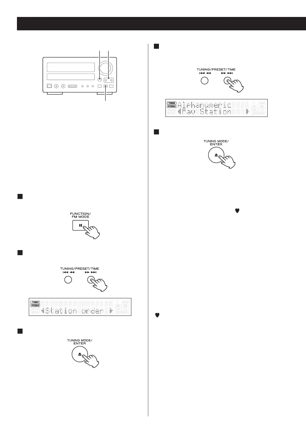 Press the TUNING button until “Station order”