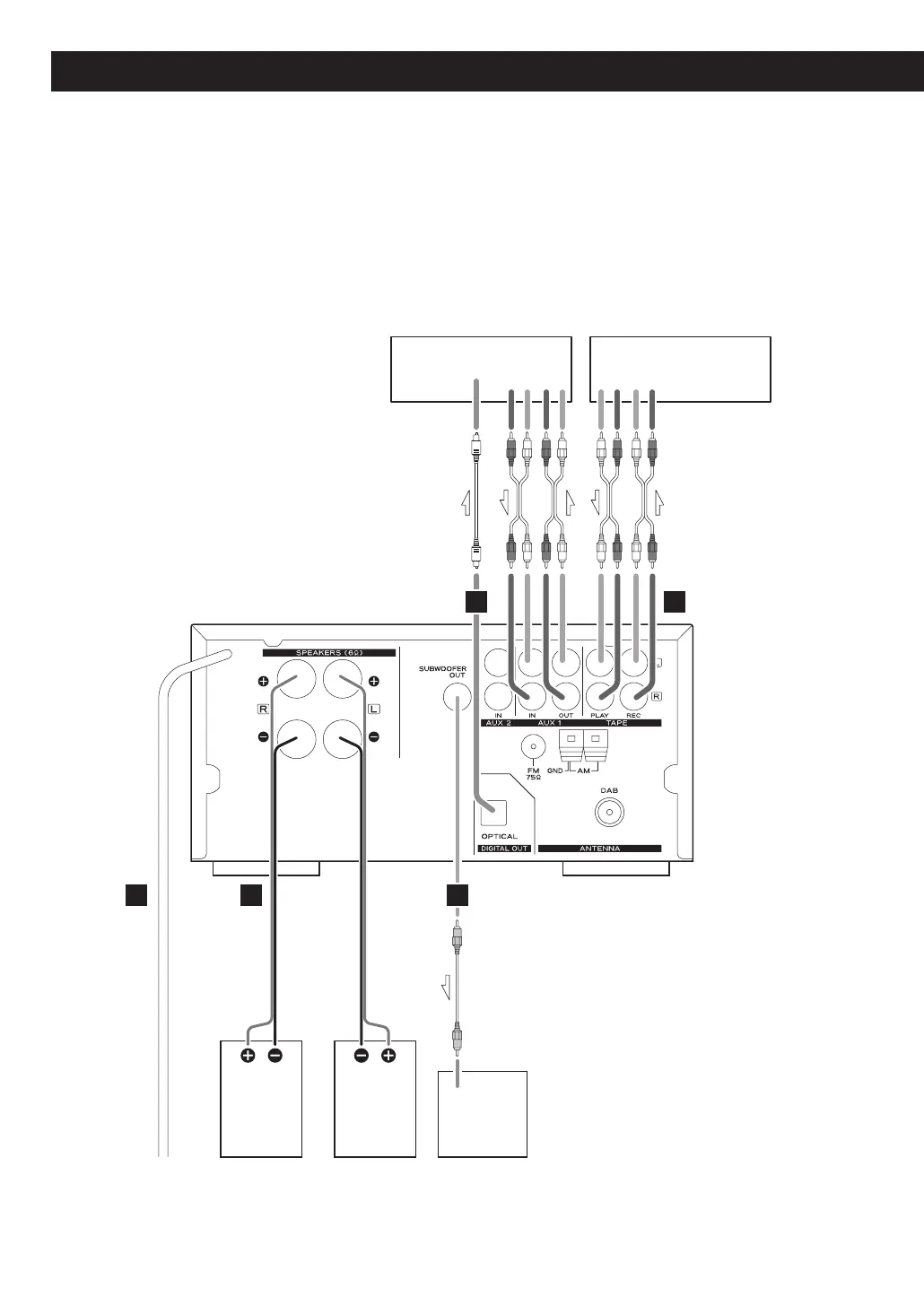 < Be sure to insert each plug securely. To prevent hum and noise, avoid bundling the