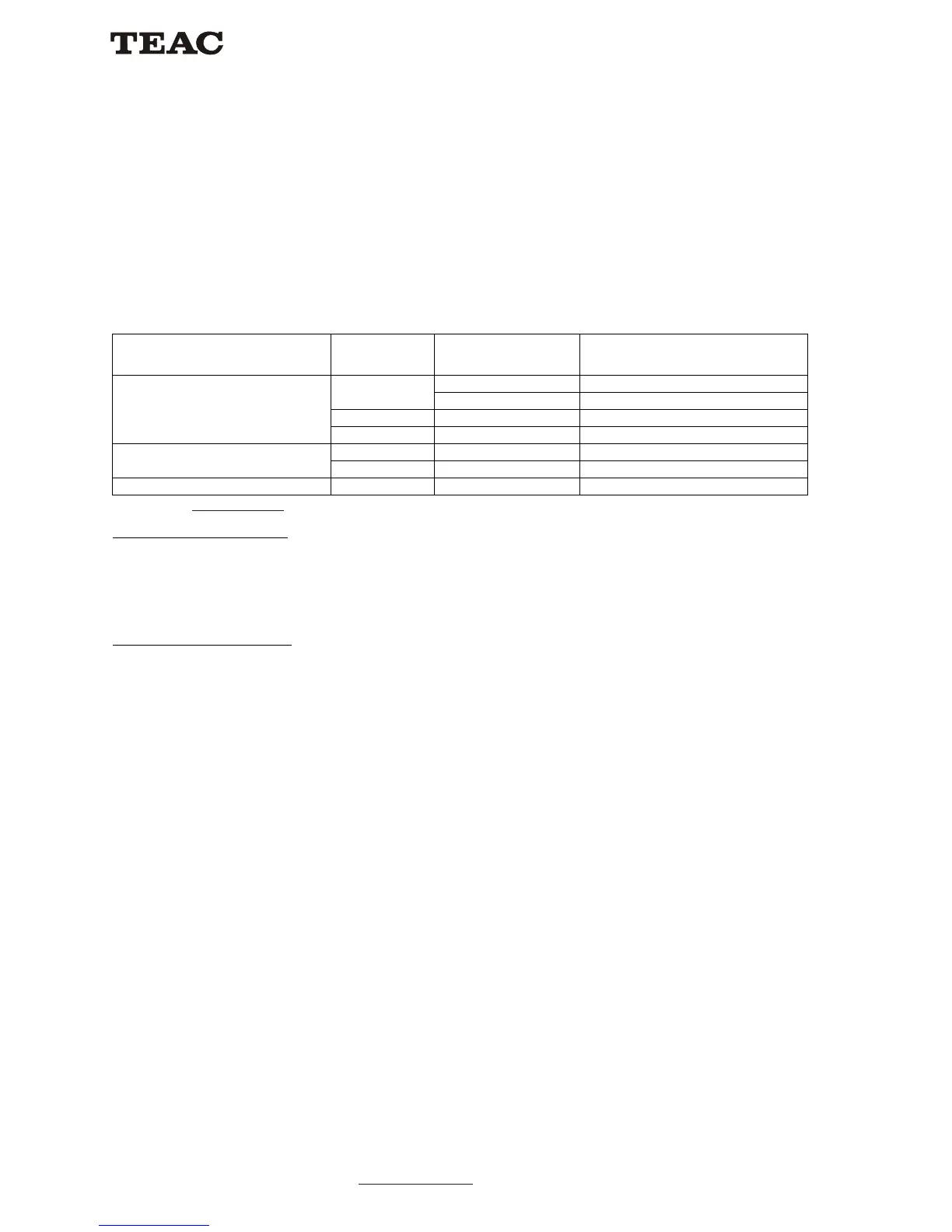 commercial purposes, as specified in the Warranty Periods Table below from the date of purchase. TEAC models released before 2014 shall