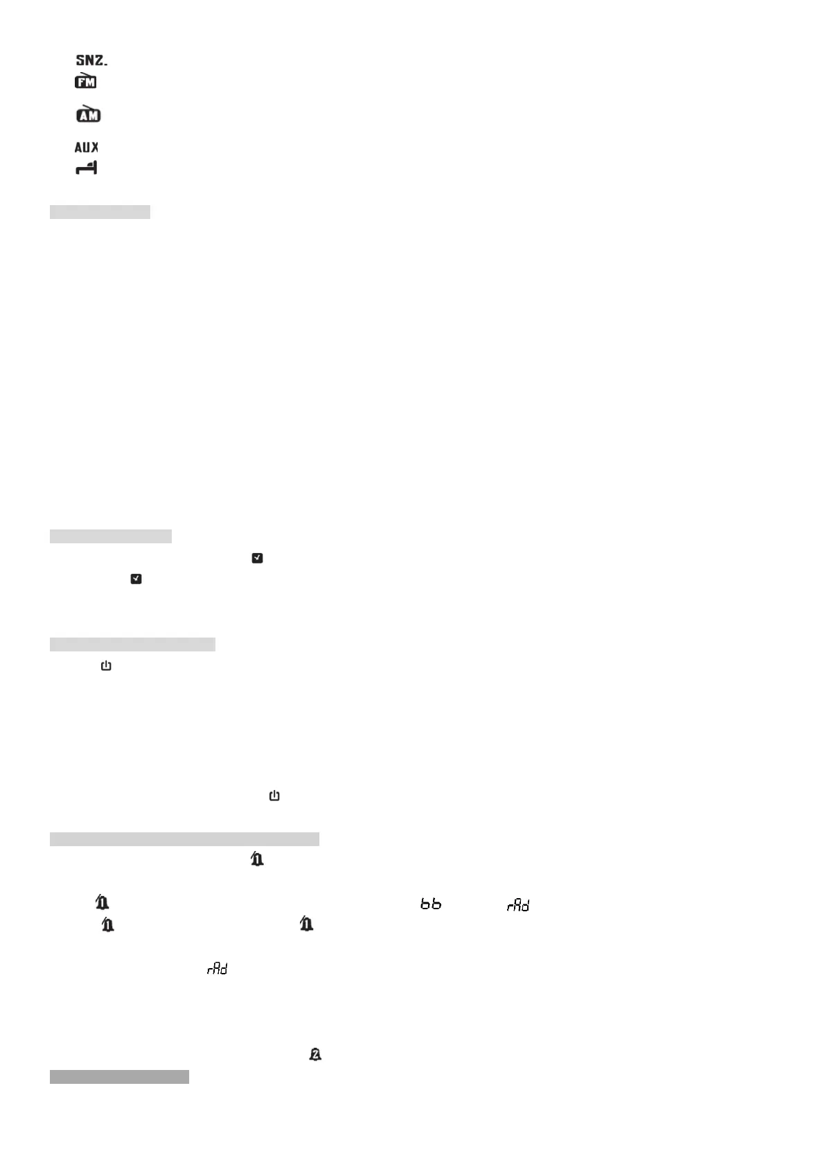 3. Press then press HR. or MIN. to select the source of wake up: buzzer or FM radio.