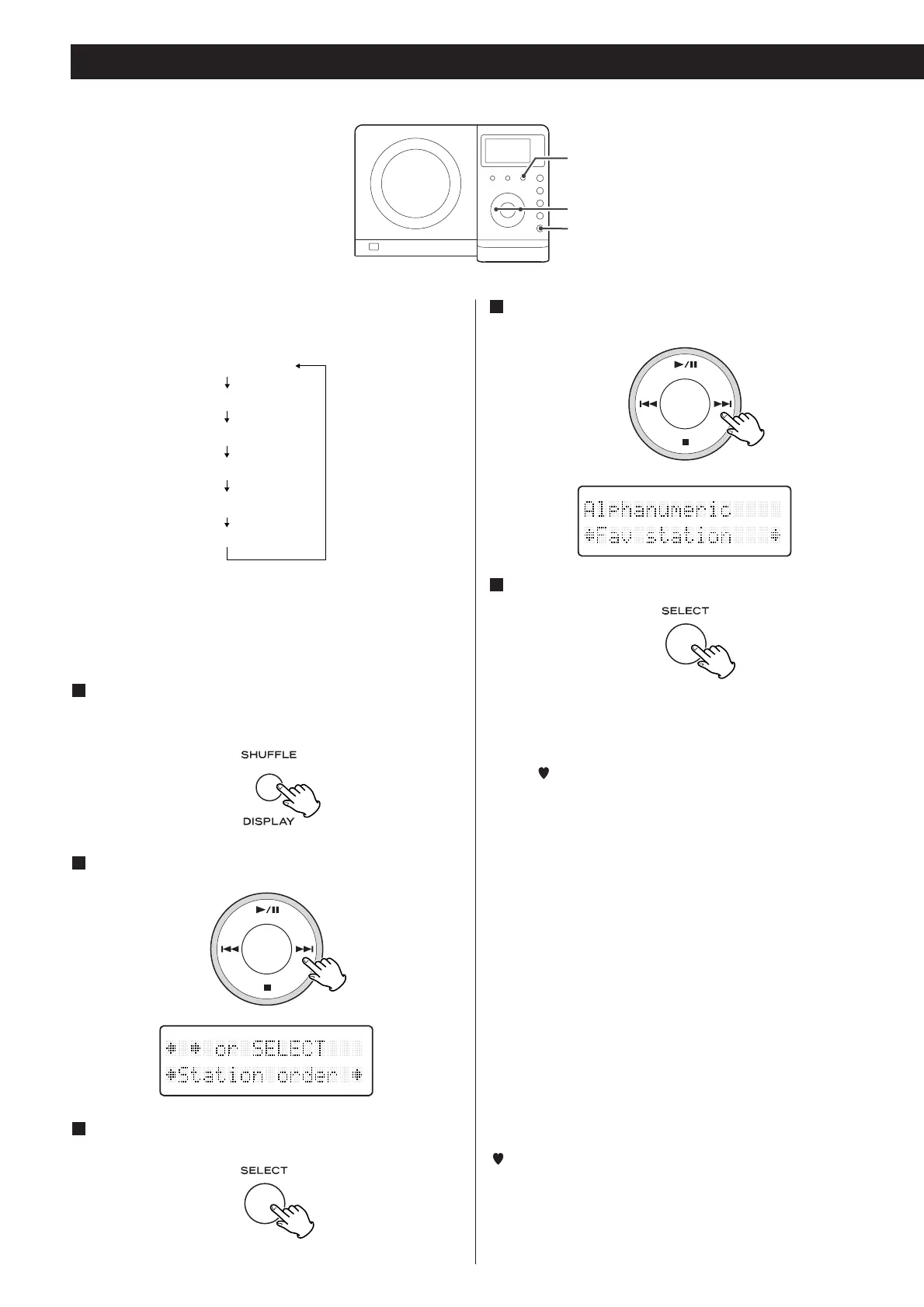 Select ‘Station order’using the SKIP button(.or /).