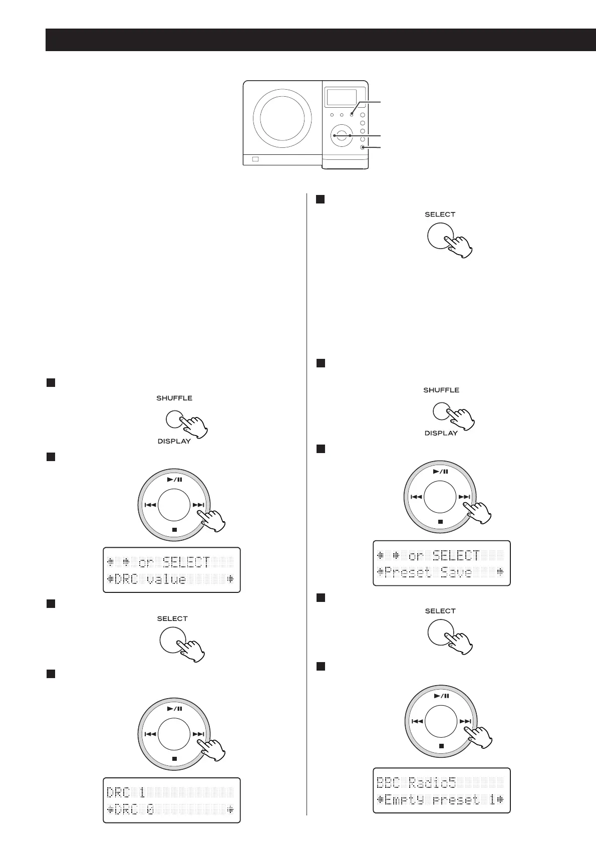 Select ‘Preset Save’ using the SKIP button (.or /).