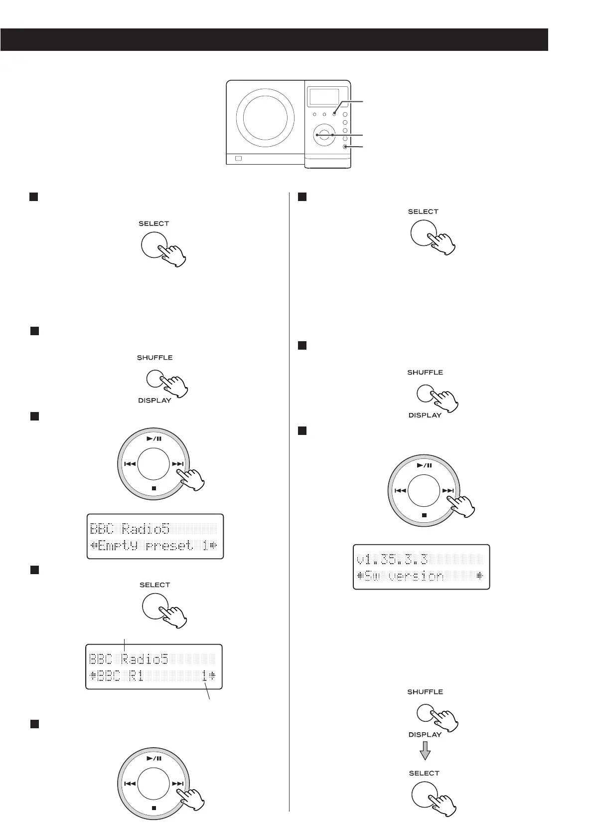 Select ‘Preset select’ using the SKIP burron (.or /).