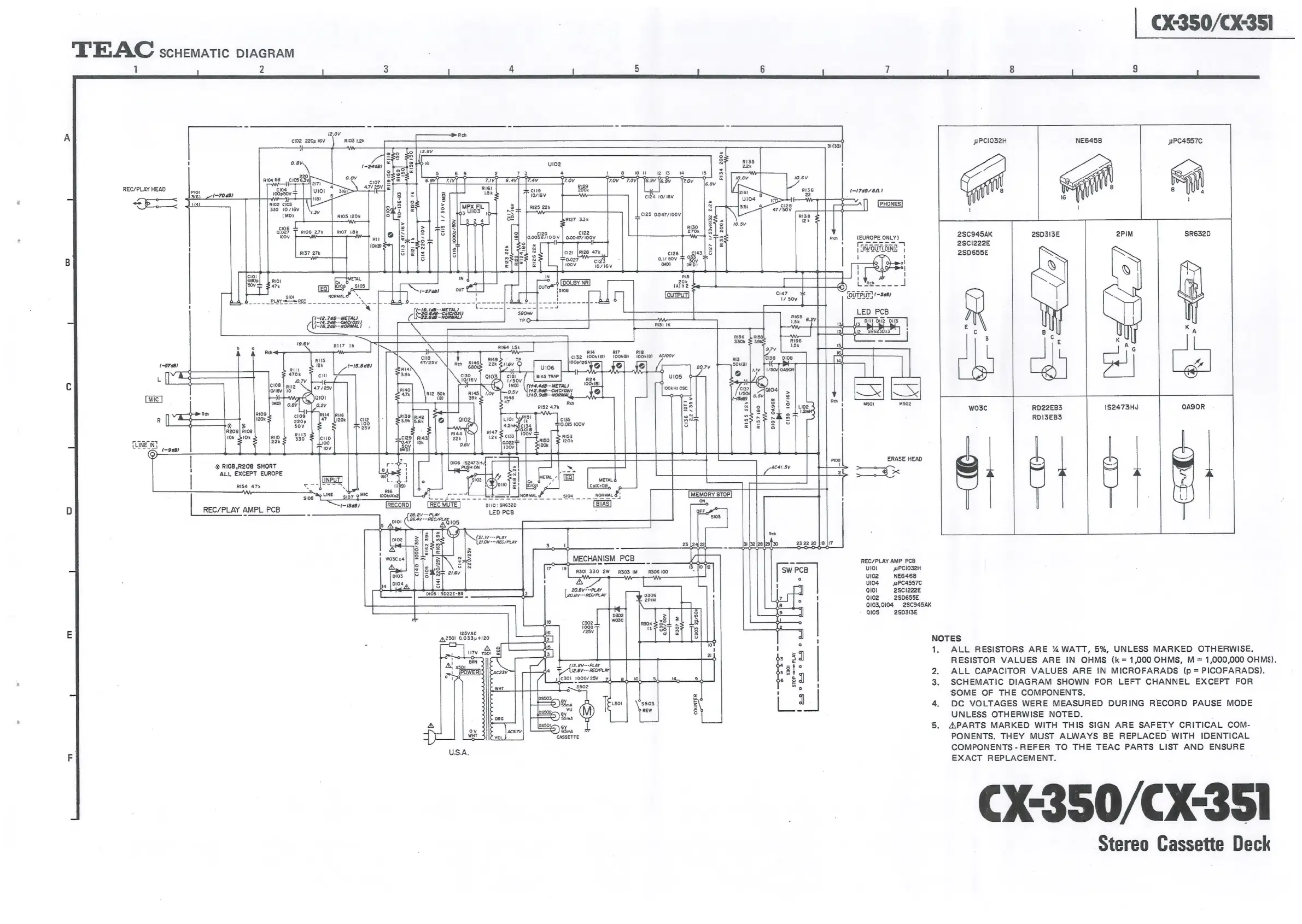 Teac CX-350 - Schematic Diagram; Circuit Diagram Overview; Component Notes and Safety Precautions