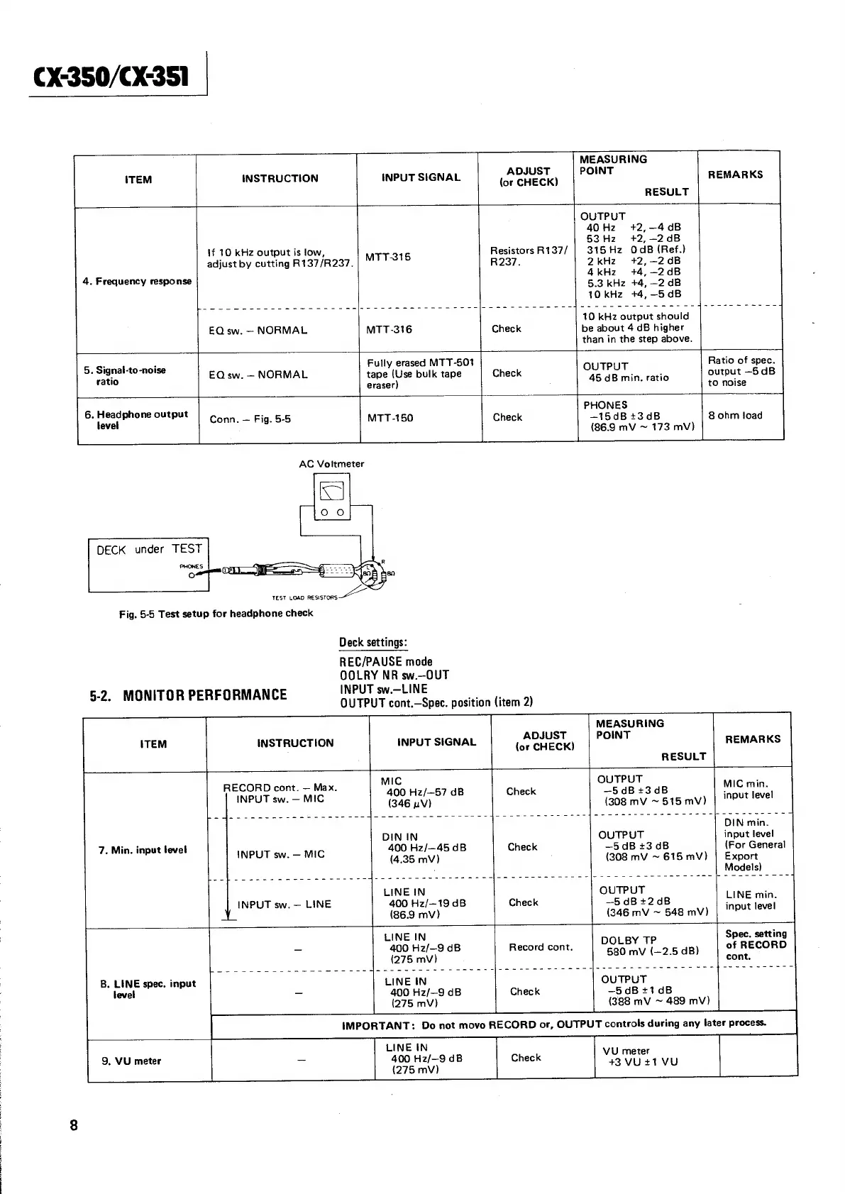Teac CX-350 - Monitor Performance; Minimum Input Level Check; LINE Input Specific Level Verification; VU Meter Monitoring