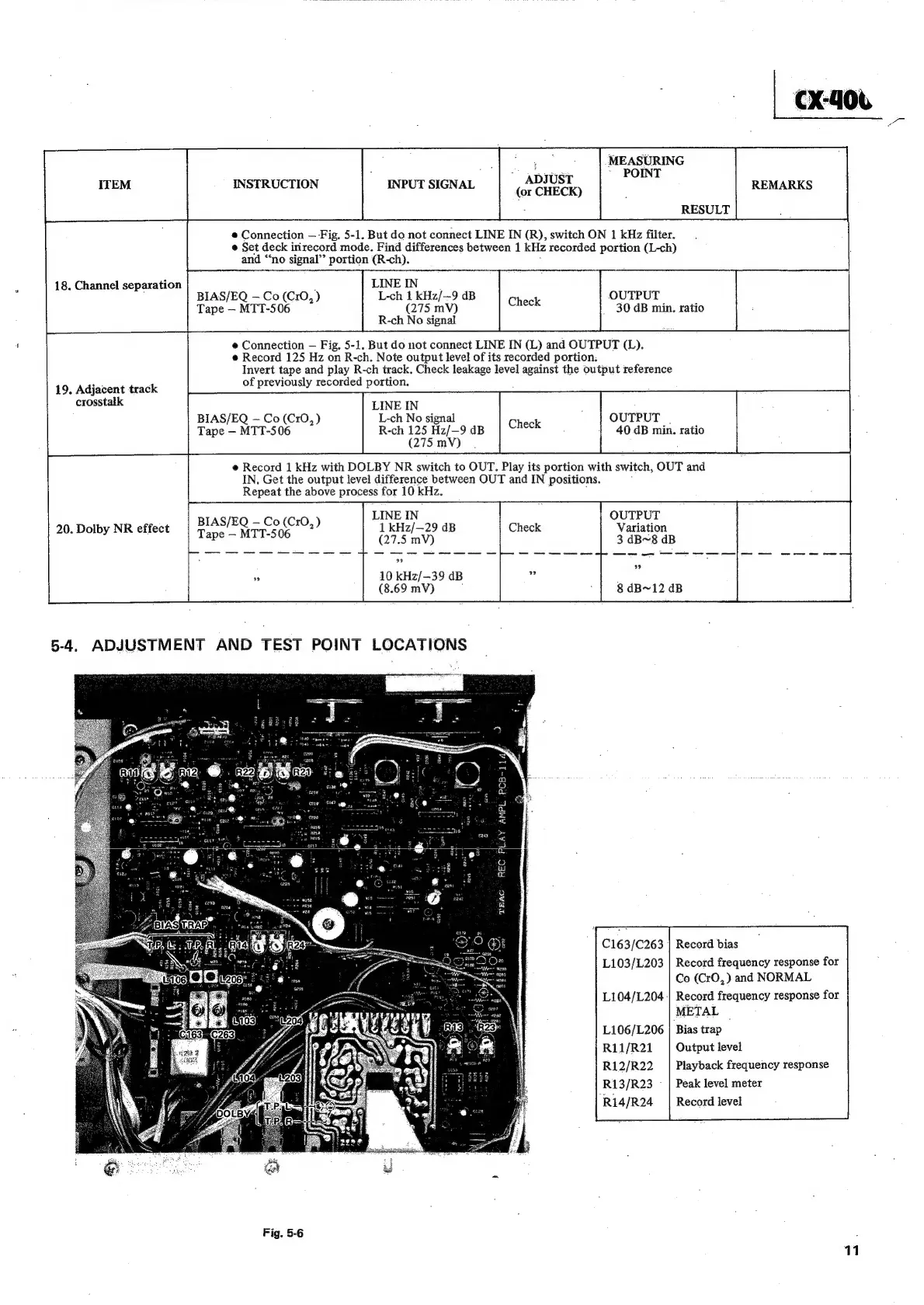Teac CX-400 - CHANNEL SEPARATION; ADJACENT TRACK CROSSTALK; DOLBY NR EFFECT