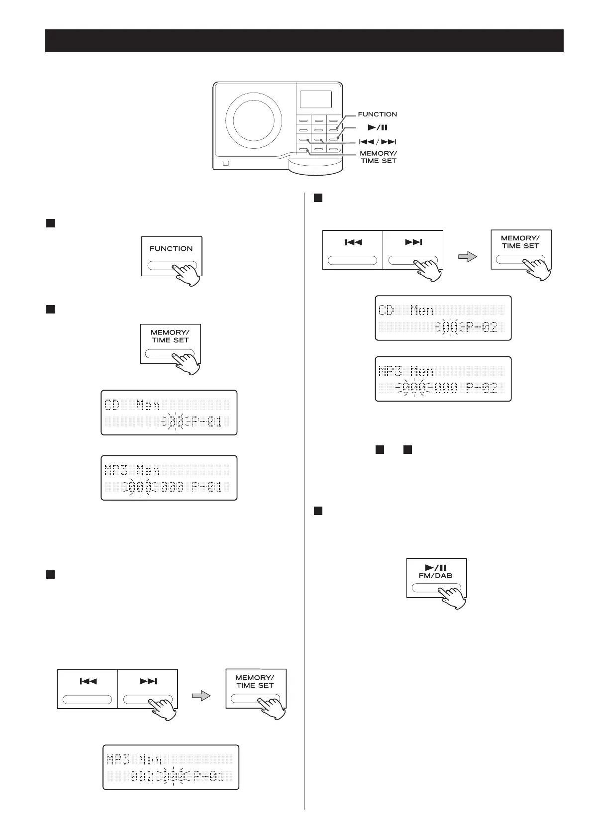 MEMORY button and the Play/Pause button (&/)).