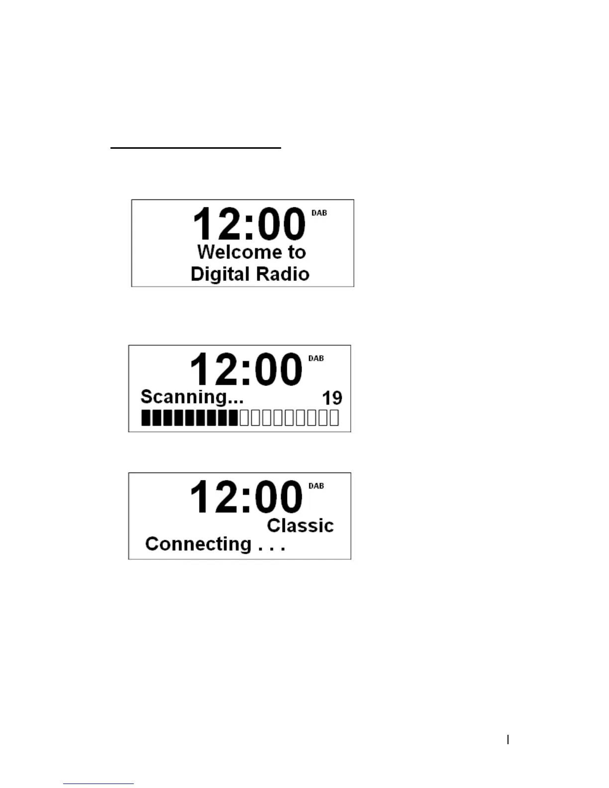 2. For initial use, radio will make a full scan, and store the stations in its memory. This will