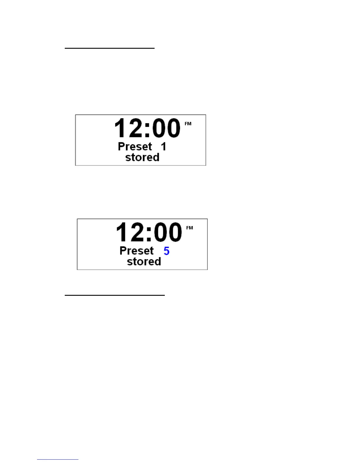 2. Press and hold one of the preset buttons until it says ‘preset # stored’.