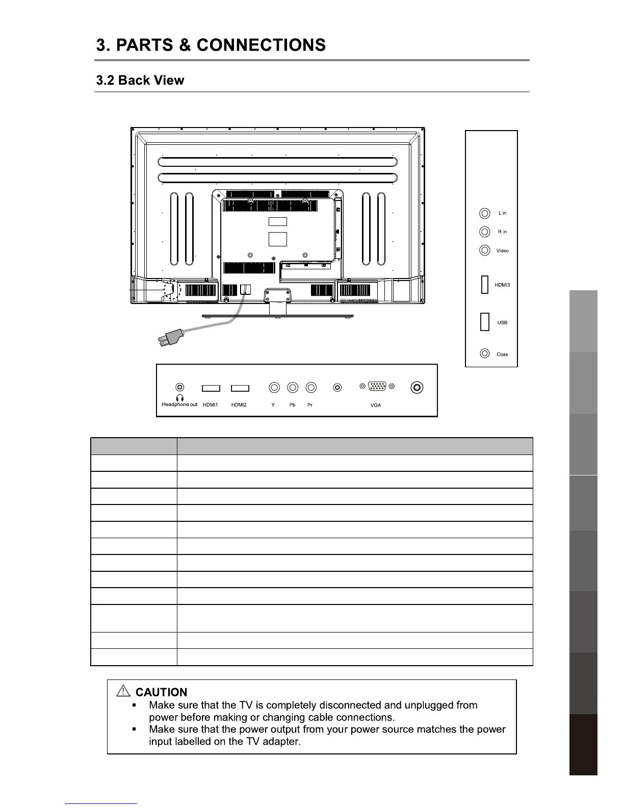 HDMI 1/2/3 Connect to the HDMI socket of your DVD or satellite box