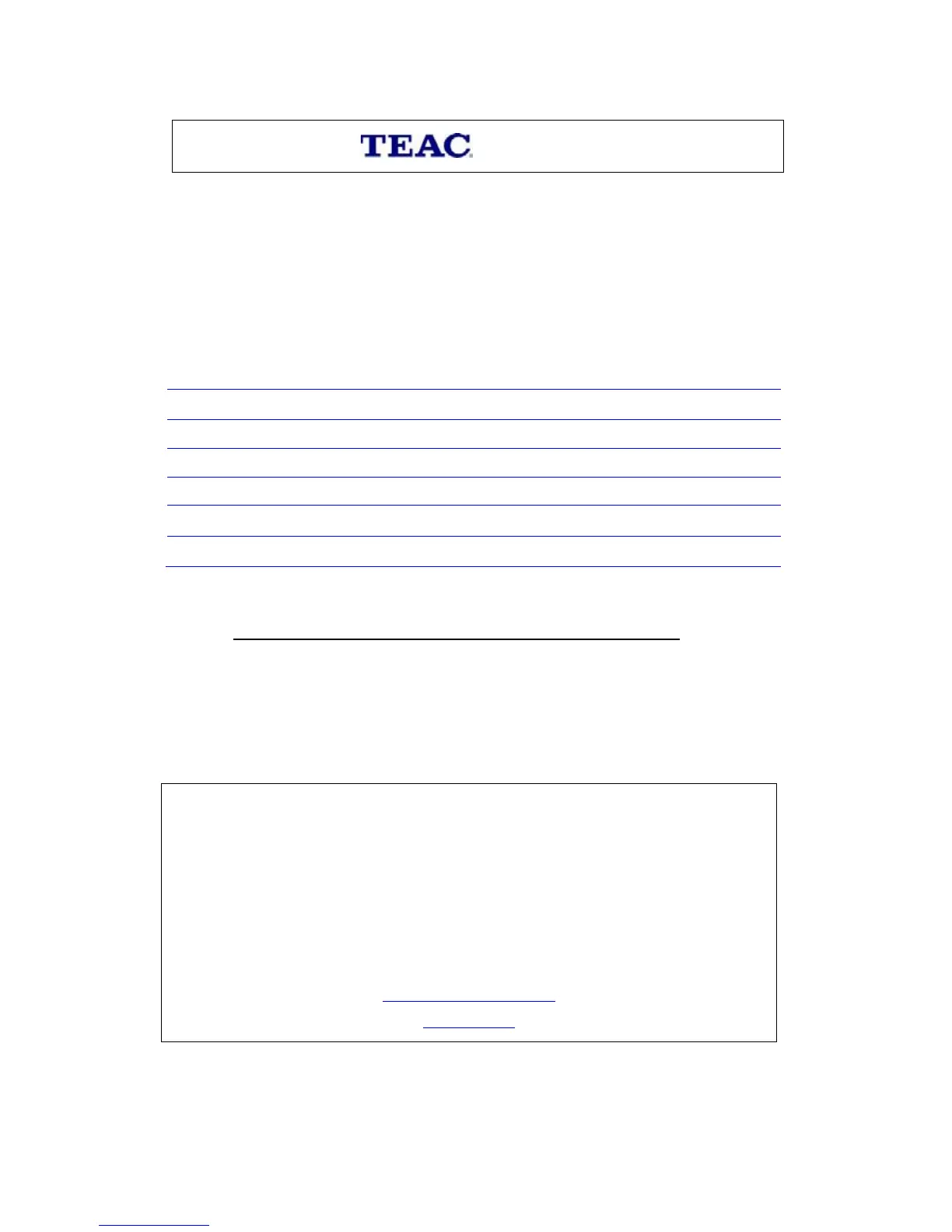 TEAC Customer Support Hotline