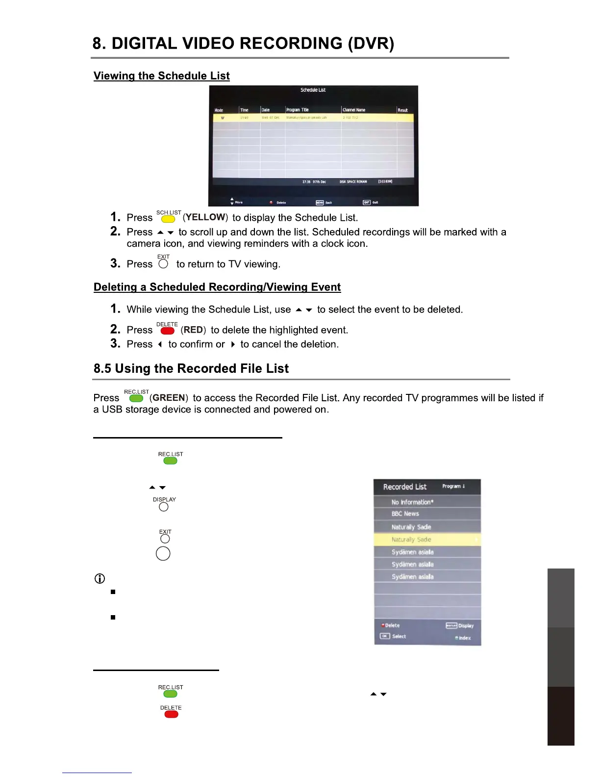 1. Press to view the Recorded File List. Press repeatedly to sort the files by