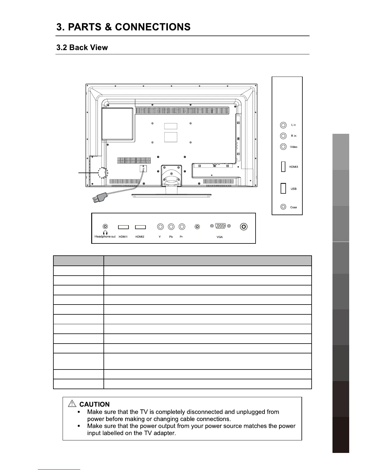 HDMI 1/2/3 Connect to the HDMI socket of your DVD or satellite box