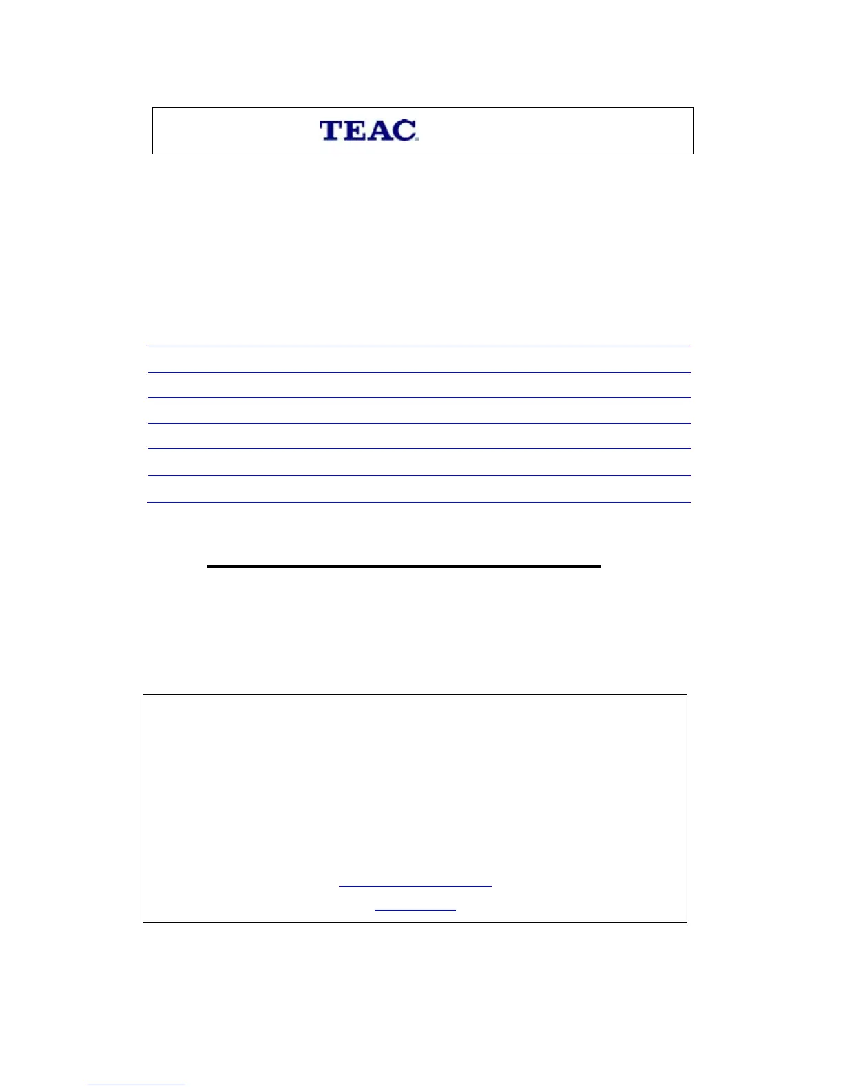 TEAC Customer Support Hotline