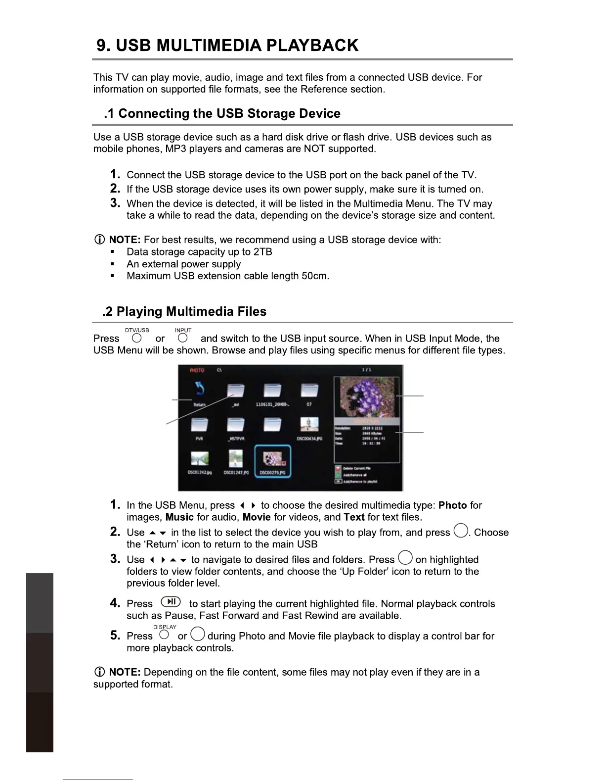 Teac DLEDV3989FHD - USB Multimedia Playback; Connecting the USB Storage Device