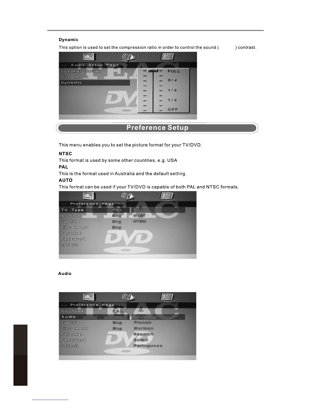 Choose a preferred language track to be played if it is available on the disc. If it is not available, the
