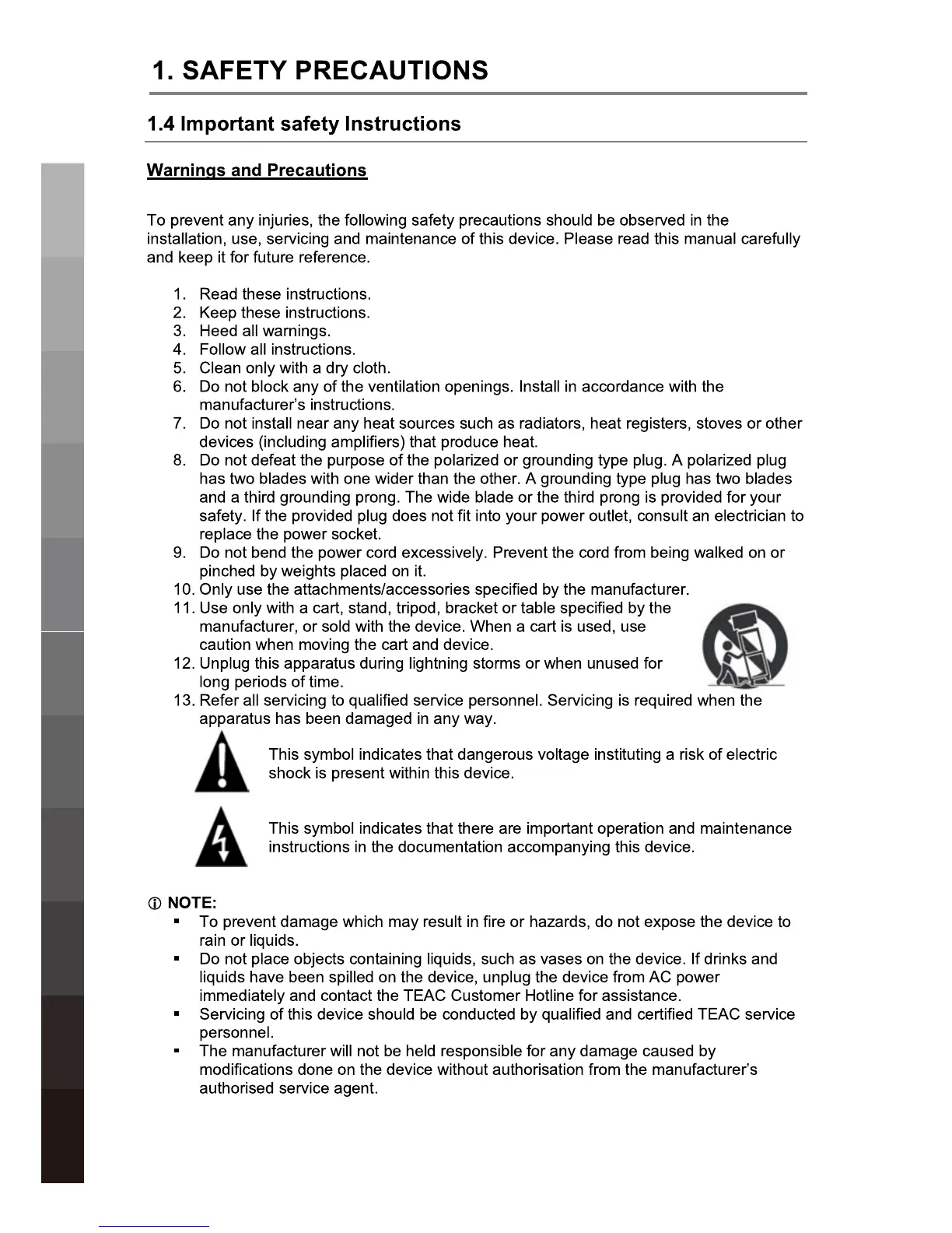 Teac DLEDV3989FHD - Important Safety Instructions