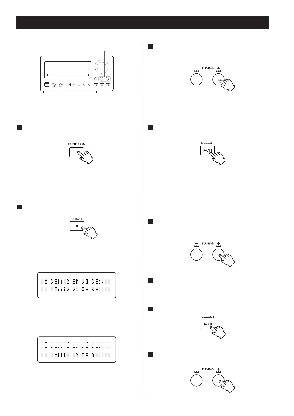 Press the TUNING button (+ or –) to select the