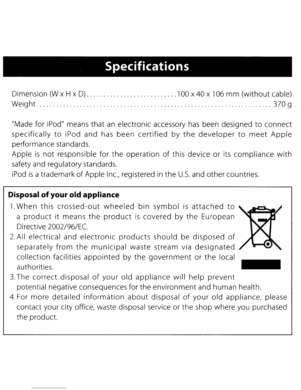 Teac DS-22 - Product Specifications; Disposal Instructions