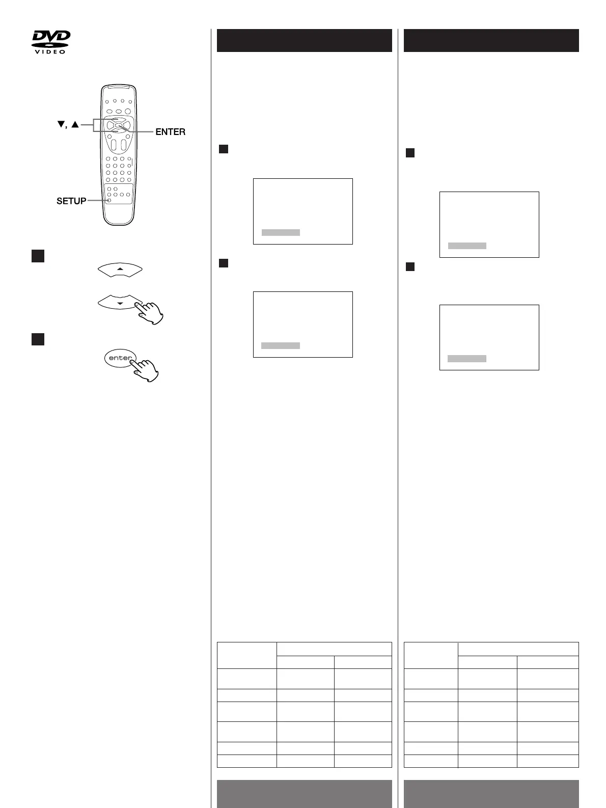 A partir du menu SETUP, appuyez sur les