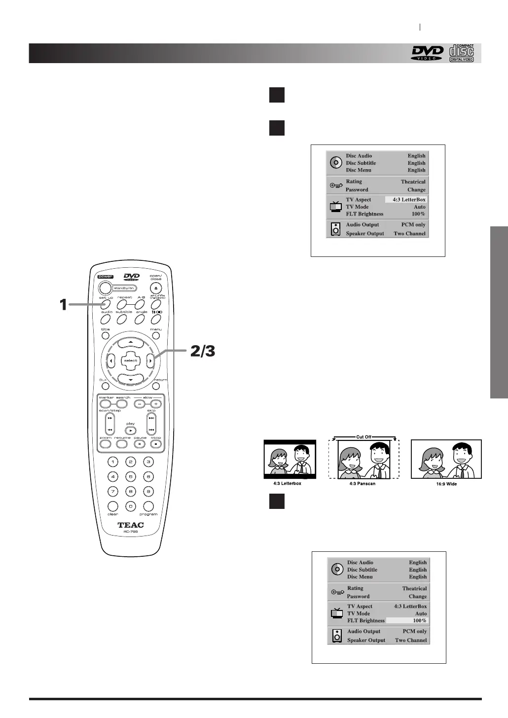 (4:3) ou d'un grand écran (16:9), et PAL/NTSC ou