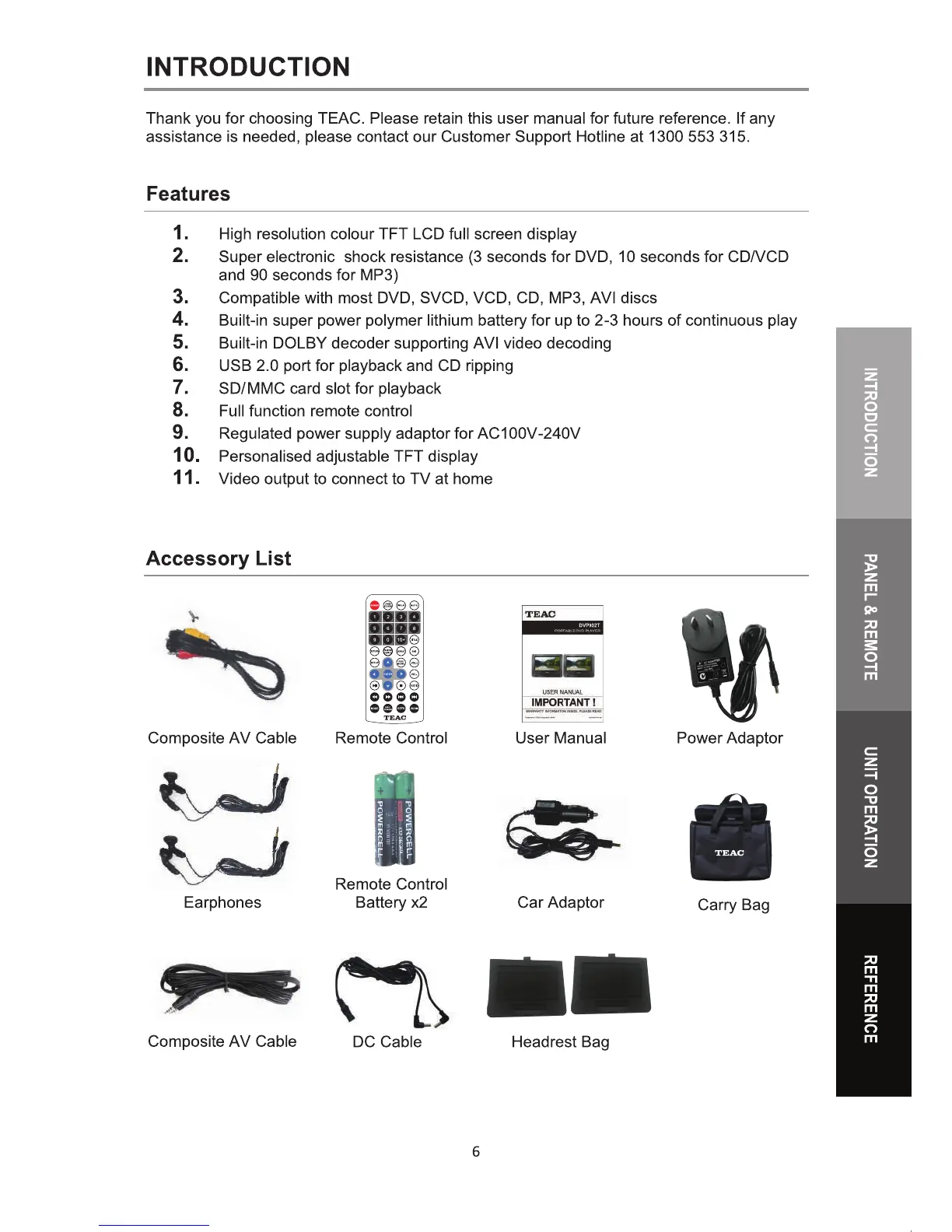 Teac DVP902T - Features; Accessory List